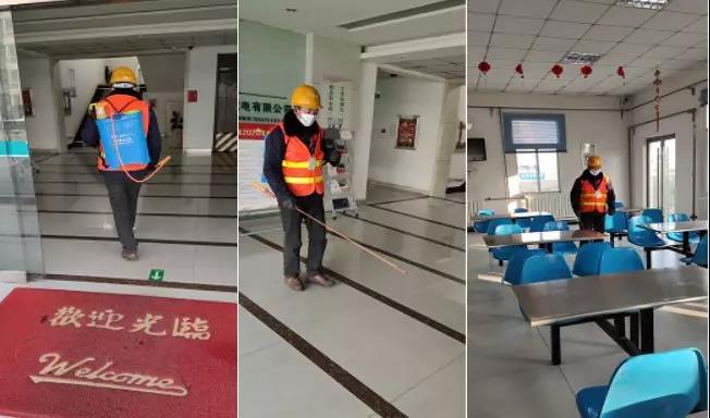 自疫情發(fā)現(xiàn)以來,分公司要求在崗員工在保持原有的工作基礎(chǔ)上,增加工作任務(wù):每日在廠區(qū)各辦公區(qū)域噴灑1~2次84消毒液,使用75%酒精頻繁擦拭人員相對密集的公用區(qū)域扶手、桌面、臺面等,食堂衛(wèi)生更是嚴格要求。