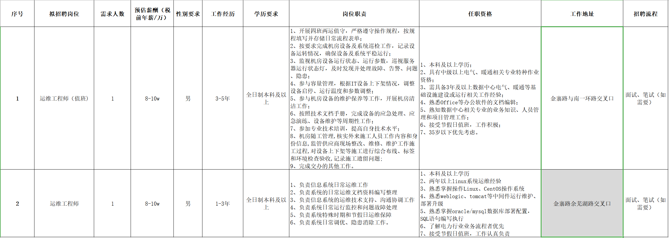 安徽皖信人力資源管理有限公司運(yùn)維工程師崗位人員招聘公告