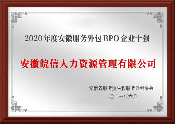 2020年度安徽服務(wù)外包BPO企業(yè)十強