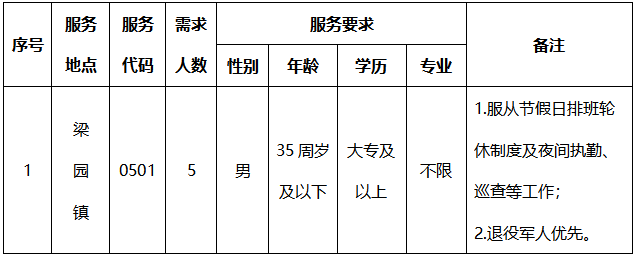 招聘城市管理輔助項目服務(wù)人員共計5名,具體要求如下表: