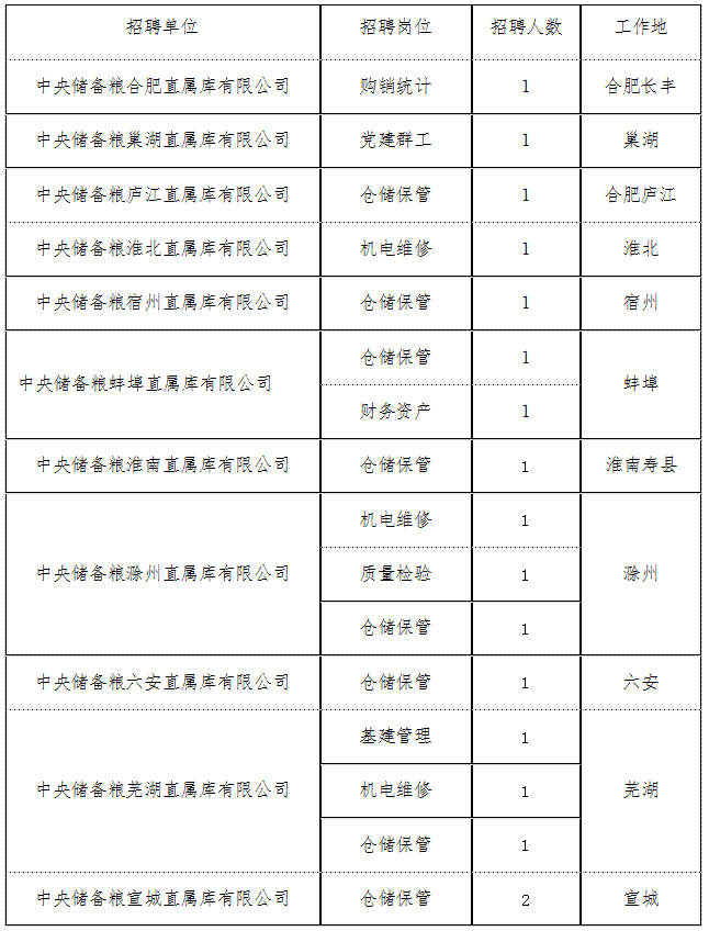 中儲(chǔ)糧安徽分公司2023年度社會(huì)招聘公告